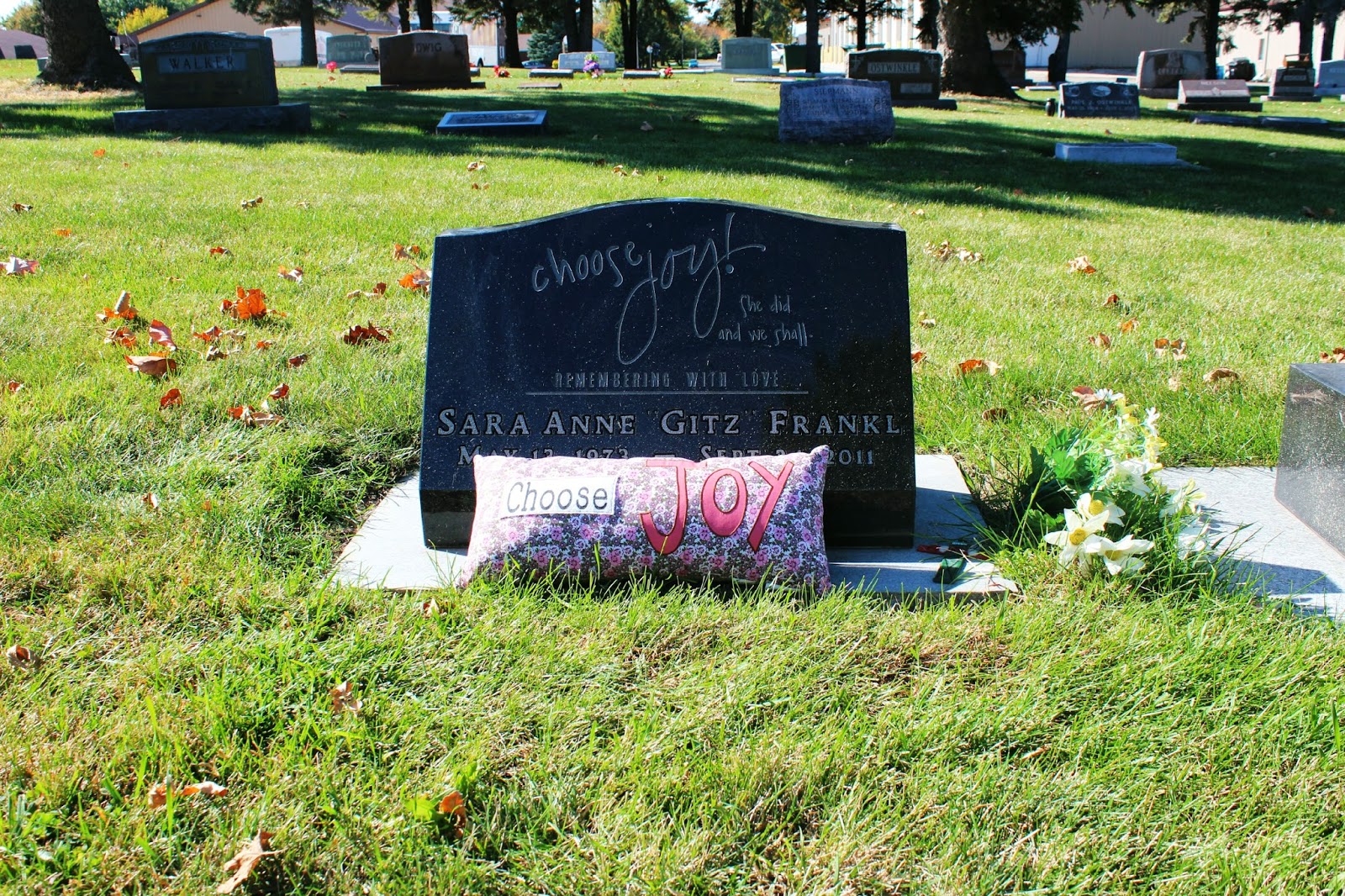 When I saw the picture of you at Sara's grave, you holding the choose JOY pillow,
